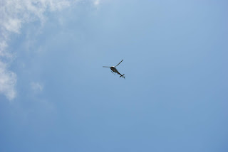 The helicopter providing aerial shots of the race.