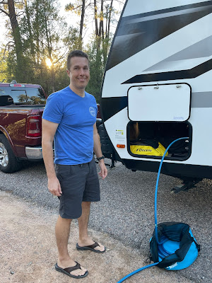 Making it to Houston Mesa around 5 or so, we stopped at their dump station/potable water location to fill up our fresh tank.