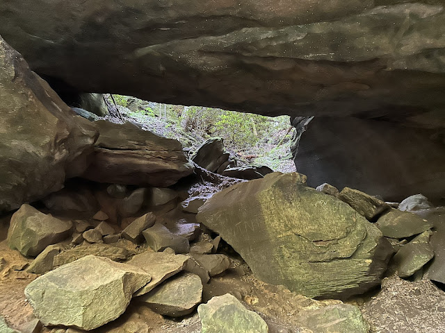 In Part 1 of this blog series, I mentioned that there are two campgrounds inside Natural Bridge State Resort Park; we were staying in Middle Fork, and the other was Whittleton. The state Park claimed one of the trails in the Whittleton area as their own, to Henson's Arch, but even though the trail we chose had the same name as the campground, and we even had to walk through the campground to access the trailhead, technically, the trail to Whittleton Arch was within the boundaries of the Gorge instead. Confusing, right? That's why we ended up doing an extra .25 miles before we even hit the trailhead, as we spent some time looking for it, checking all the maps we were carrying, and so on.