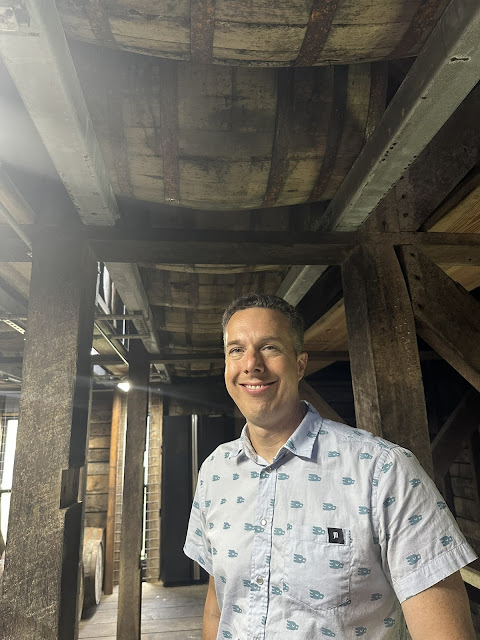 While you'd be correct in assuming that James B. Beam Distillery makes Jim Beam, its most famous product, its portfolio includes tons of other notable spirits, such as Legent, Knob Creek, Basil Hayden, Baker's, and Booker's. They make a ton of whiskey/bourbon! Although we love a good production tour, we've been on quite a few in the last year, so we opted for their "Maturation Matters" experience instead. In lieu of wandering past a bunch of mash tuns (which I really do love - I enjoy watching the little yeasty beasties do their work), we were driven to one of Beam's rickhouses and given a spot in front of three barrels. Each barrel was from a different floor of the warehouse, but they were filled with the same spirit - Jim Beam white label - and barreled at the same time. We were clearly able to tell the impact the location in the rickhouse made on the liquid in the barrel; barrels up higher experience hotter temperatures and age faster, while those lower move along much slower. It was a really interesting session!